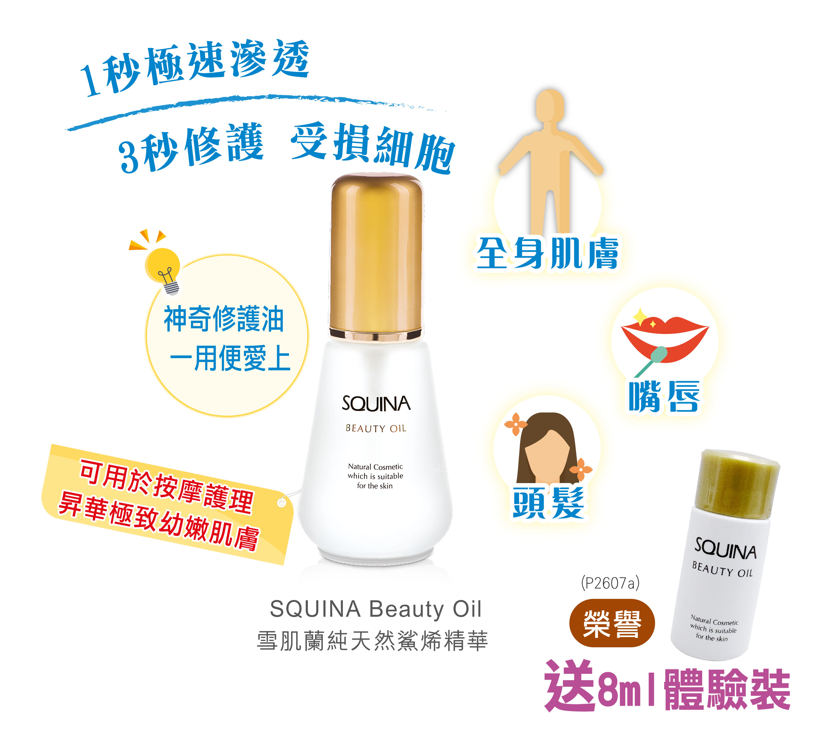 除了心腦要添活力,肌膚也要煥然一「身」,外塗「青春の秘密──鯊烯精華」體驗極致神奇功效,加倍呵寵肌膚,重煥剔透亮澤年輕肌,保持青春、健康、美麗,締造逆齡傳奇。